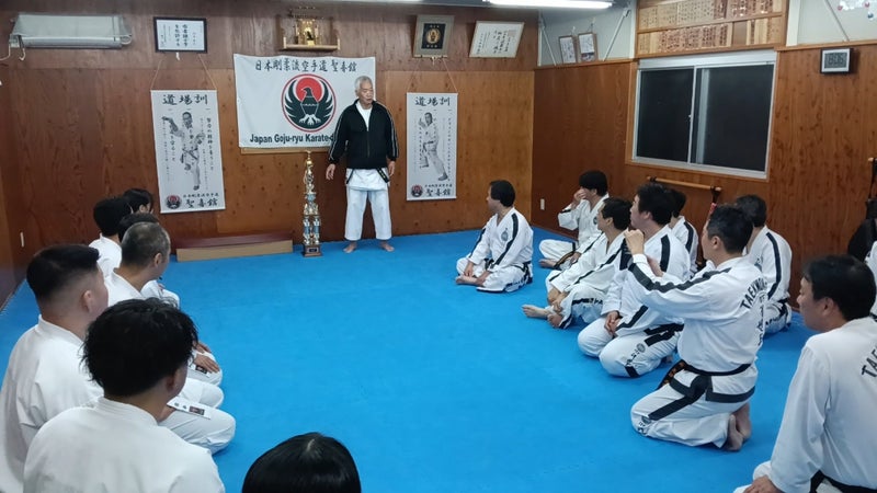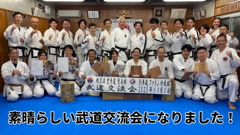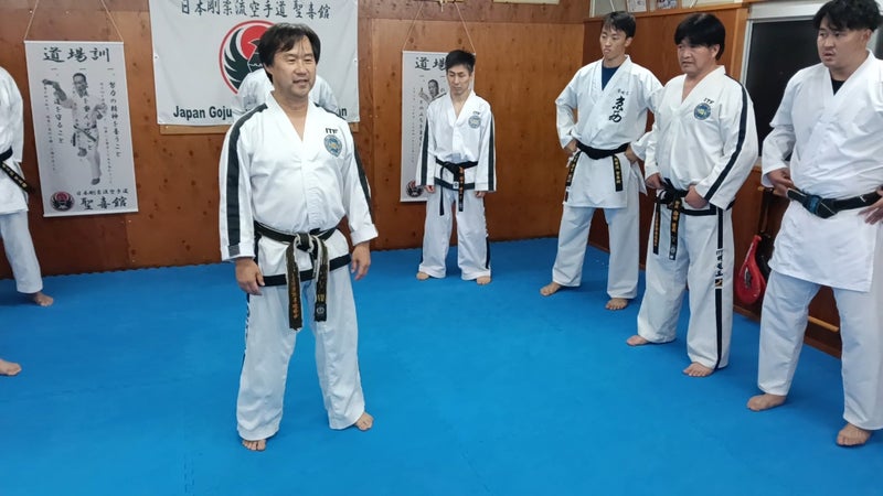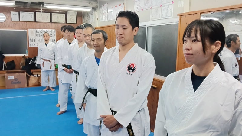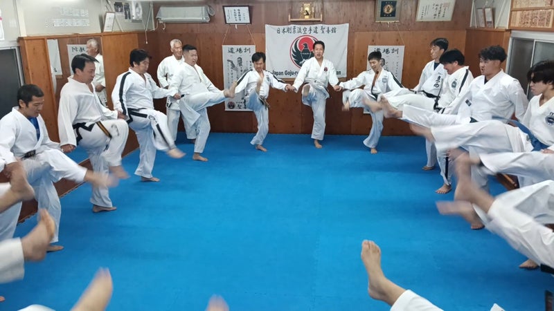 今回の交流稽古では、特に初めて参加した聖喜館指導員は、通常の空手道とは違う稽古にとても興味深く、熱心に稽古していました。